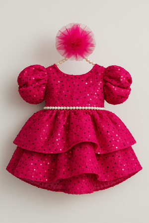 - Accessories: Comes with a matching hot pink flower headband to complete the party look.