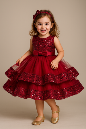 - Fabric: Soft maroon net with heavy sequin embellishments for a glamorous finish.